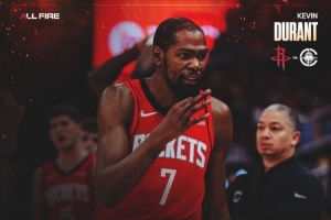 两大全明星!火箭官方发布杜兰特和申京本场数据海报
