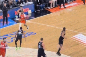 有攻有传!小德里克·琼斯先是突破上篮 再妙传祖巴茨暴扣!