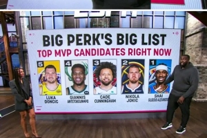 帕金斯评赛季至今MVP前五!亚历山大第1 约基奇第2 康宁汉姆第3