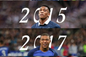 法国队晒荣膺金童奖的国家队成员:博格巴、马夏尔、姆巴佩、杜埃