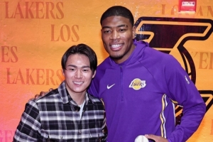世界大赛MVP山本由伸观战湖人 赛前八村塁作为代表送上专属球衣