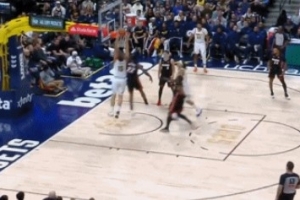 很努力啊!约基奇防守成功干扰球 随后快攻跟进完成双手暴扣