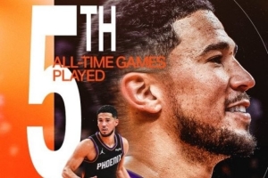 里程碑!布克太阳生涯出战684场比赛 超越凯文·约翰逊排队史第五