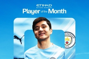 出战全部8场比赛,曼城官方:胡桑诺夫当选球队1月最佳球员