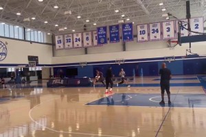 保罗·乔治和贾里德·麦凯恩一起进行了全场跑动接球三分训练...