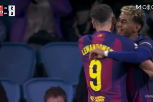 巴萨3-2塞尔塔!拉什福德横传莫里巴解围失误,亚马尔破门